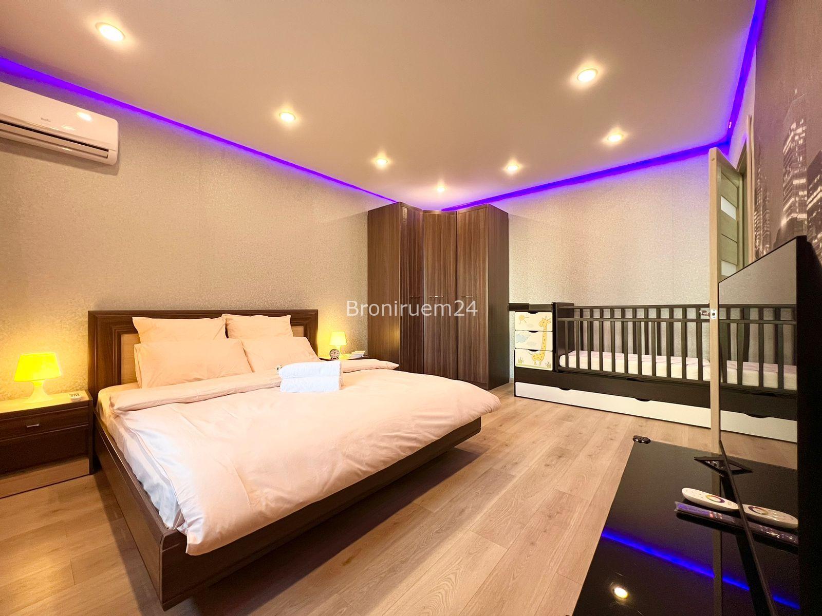 Описание объекта: Описание Сдается квартира в тихом центре, в новом многоэтажном доме расположенном в 10 минутах езды на машине от центра города. С новым и качественным ремонтом. ‼️В квартире большая двуспальная кровать, двуспальный диван + детская кроватка. ‼️Два телевизора, две лоджии, современная мебель, новая сантехника, натяжные потолки, стеклопакеты, хорошая шумоизоляция, фен, утюг, гладильная доска, сушилка для белья, стиральная машина, раздельный санузел . Есть все необходимое для проживания.