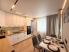 Кухня оснащена всеми необходимыми бытовыми приборами (холодильник, микроволновка, электрический чайник, духовка) и столовыми принадлежностями (кастрюли, сковорода, кружки, тарелки, столовые приборы).
