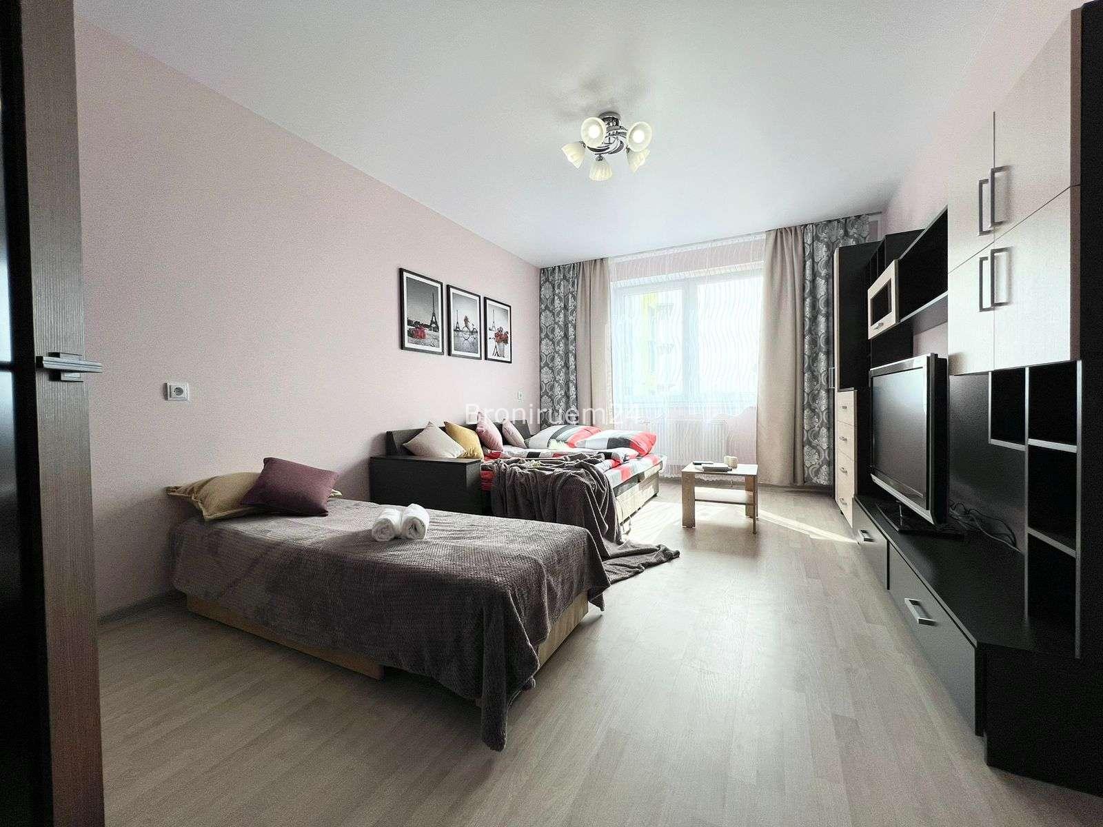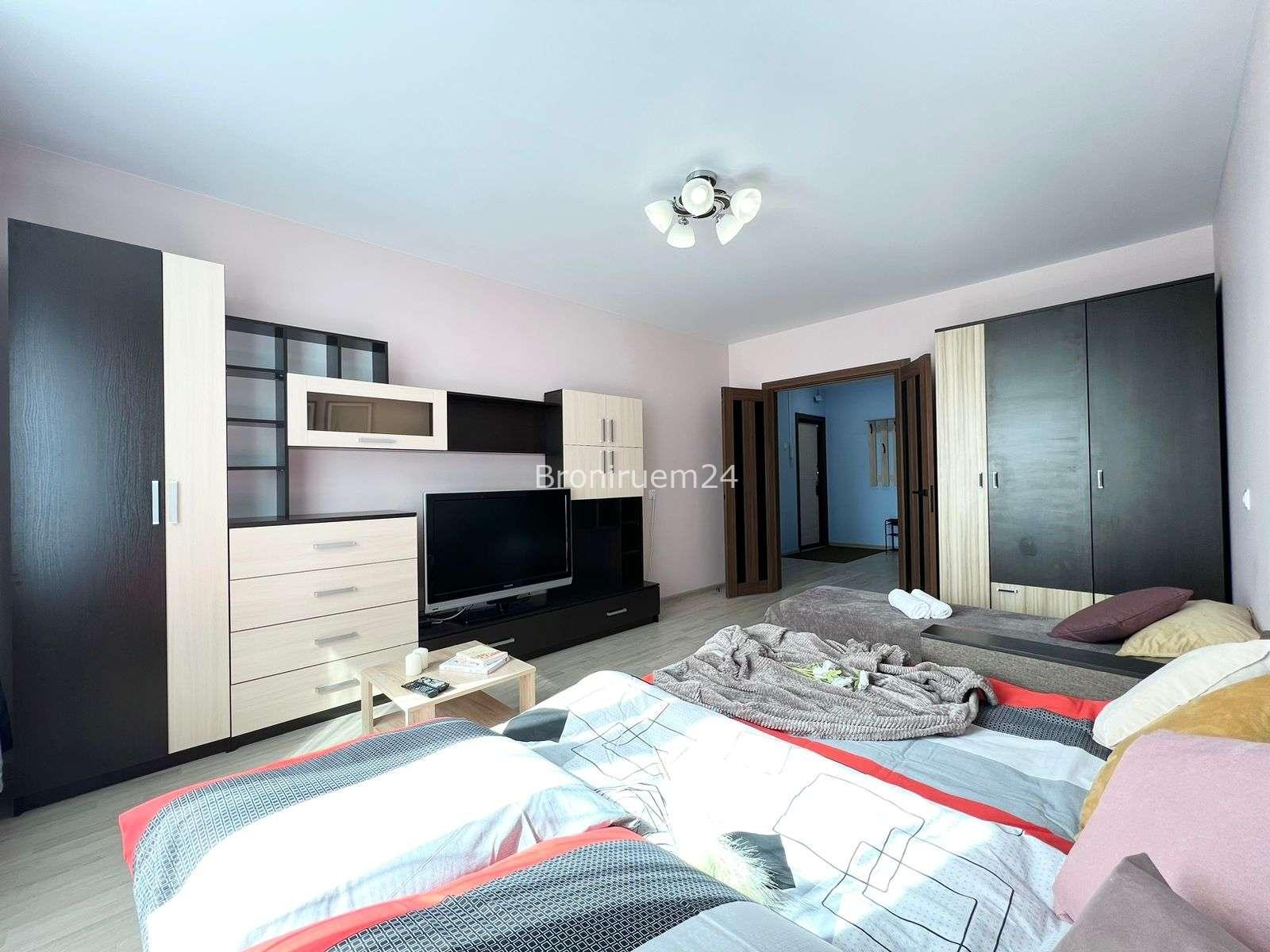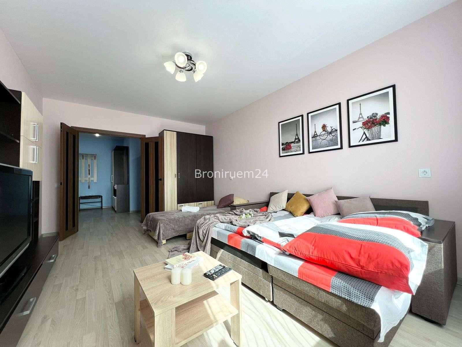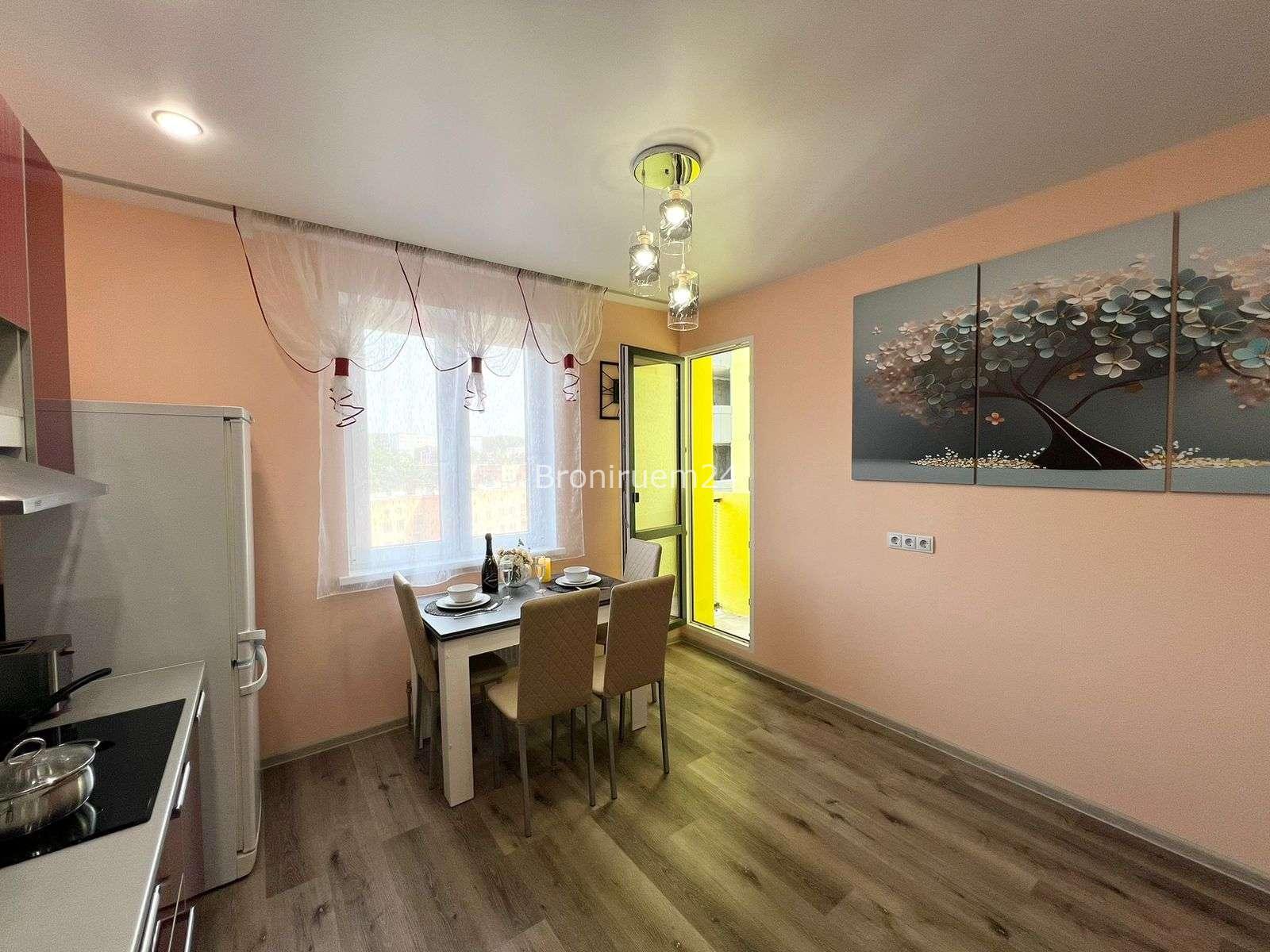 Описание объекта: Описание Если вы любите чистоту и комфорт - вам сюда. Погрузиться в атмосферу праздника и отличного настроения можно уже сегодня + качественный сервис! Комфортабельная квартира в новом доме, с евро ремонтом и стильным дизайном. ❗️ В Вашем распоряжении: большая двуспальная кровать с мягкими подушками, двуспальный диван и односпальная кровать , утюг, гладильная доска, сушилка для белья, стиральная машина. Есть все необходимое для проживания!