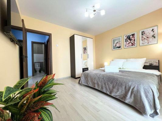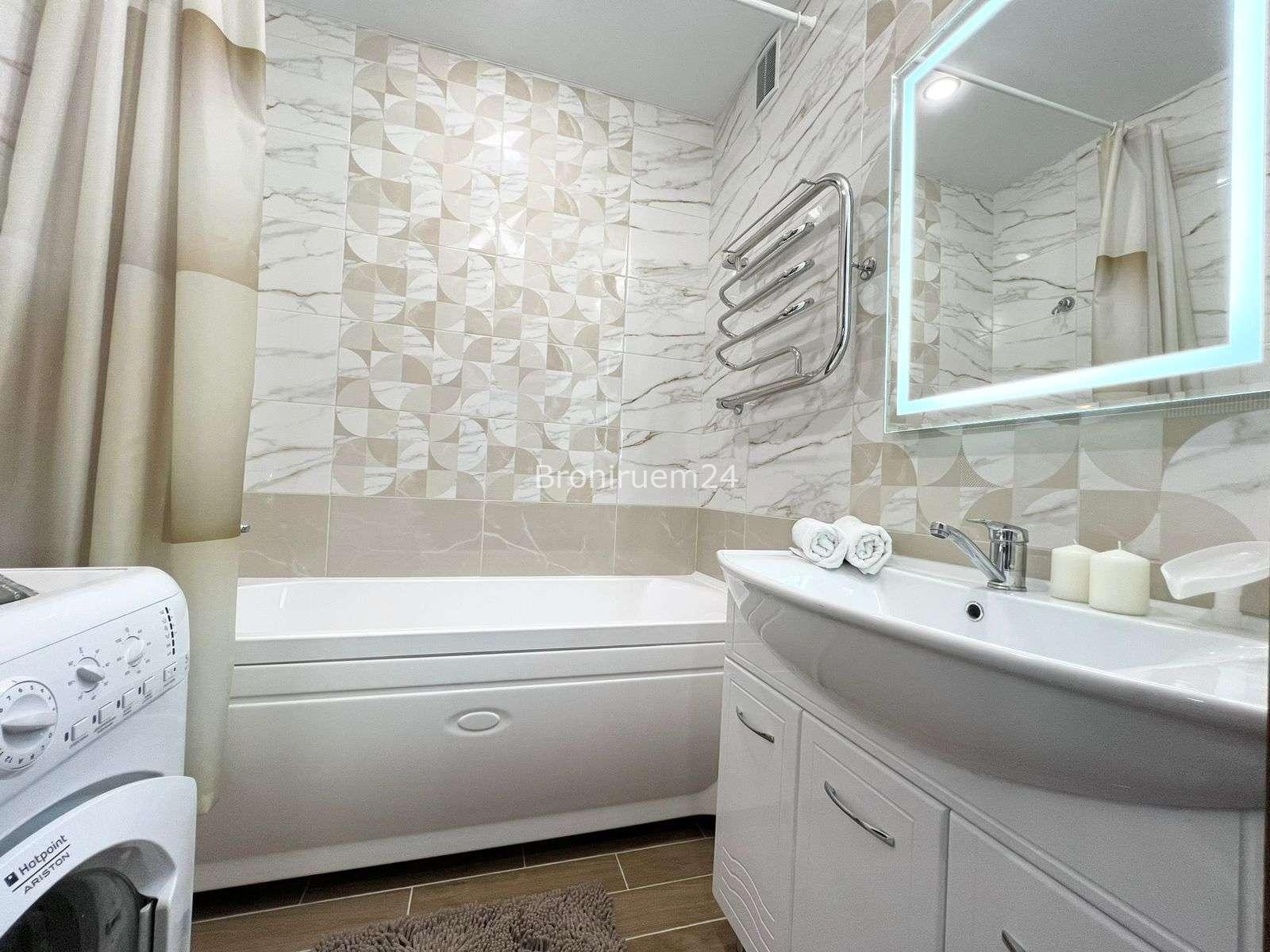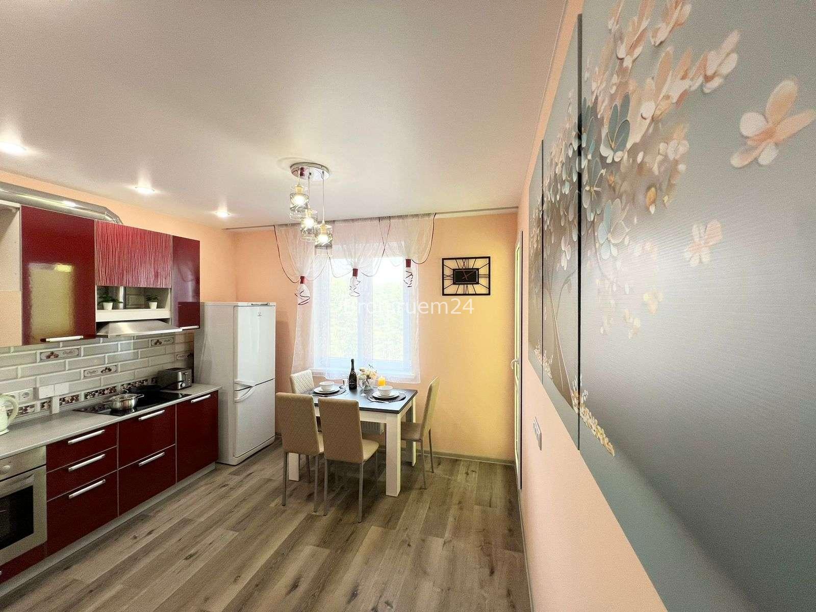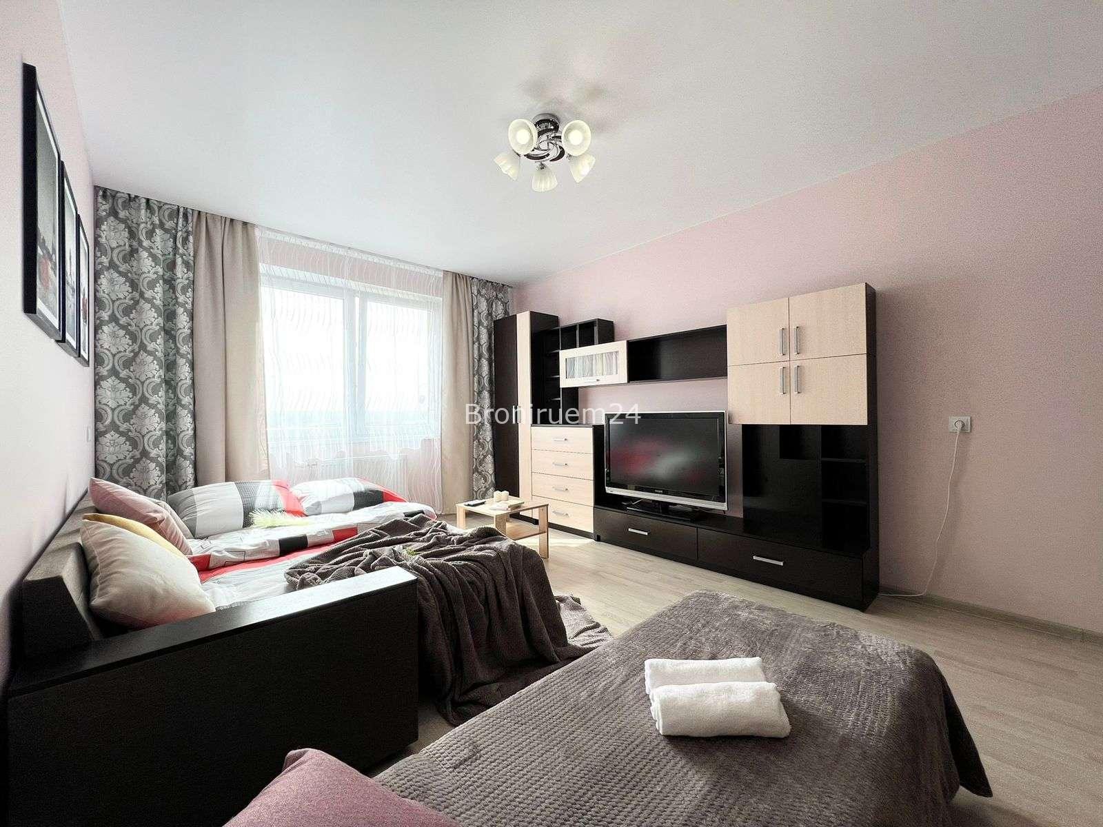 Описание объекта: Описание Если вы любите чистоту и комфорт - вам сюда. Погрузиться в атмосферу праздника и отличного настроения можно уже сегодня + качественный сервис! Комфортабельная квартира в новом доме, с евро ремонтом и стильным дизайном. ❗️ В Вашем распоряжении: большая двуспальная кровать с мягкими подушками, двуспальный диван и односпальная кровать , утюг, гладильная доска, сушилка для белья, стиральная машина. Есть все необходимое для проживания!