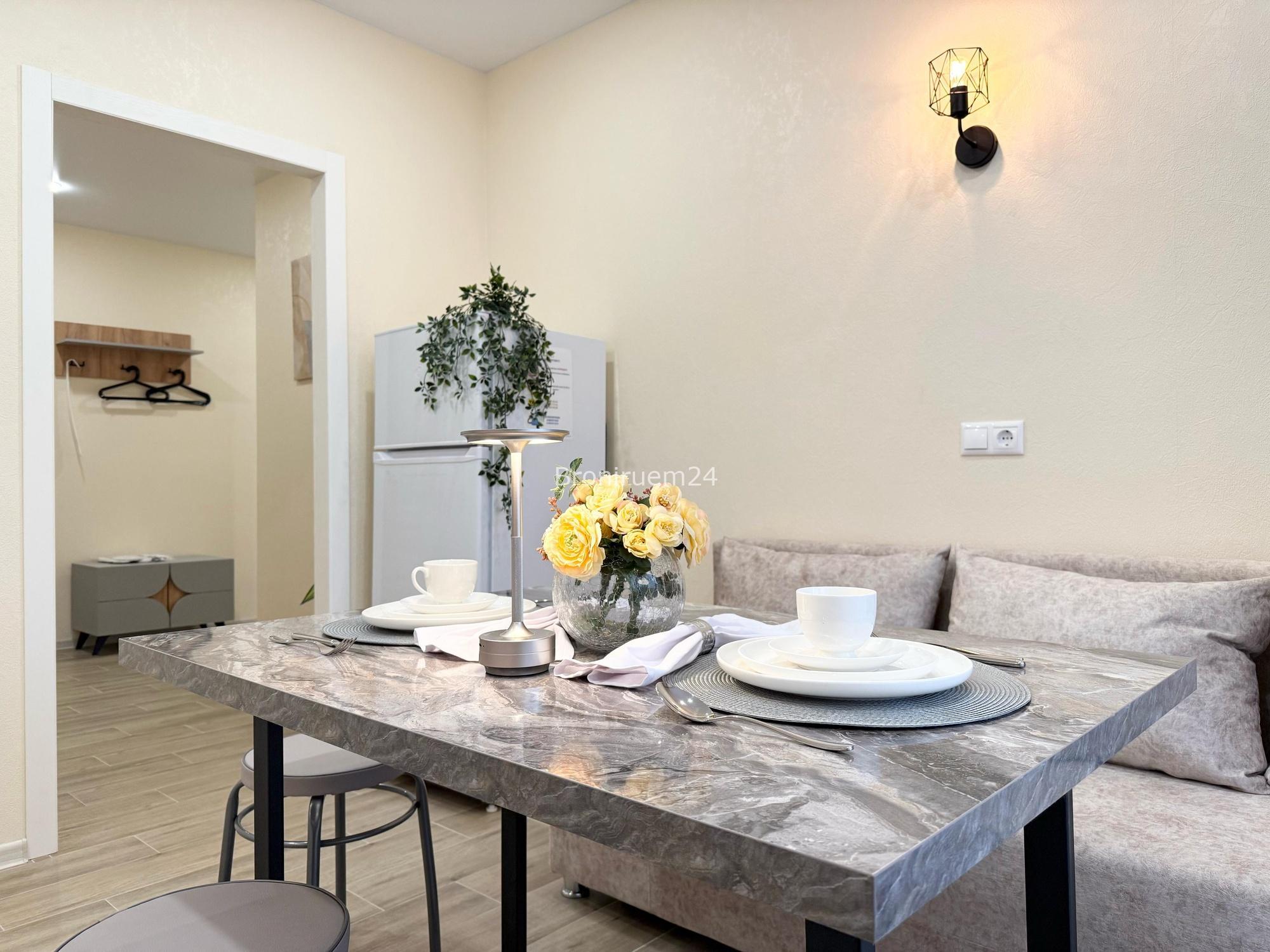 Описание объекта: Описание Сдается двухкомнатная квартира в тихом центре, в новом многоэтажном домe 2023 года постройки, расположенном в 5 минутах езды на машине от центра города. С новым и качественным ремонтом. ❗️ В квартире два телевизора, современная мебель, новая сантехника, натяжные потолки, стеклопакеты, хорошая шумоизоляция, фен, утюг, гладильная доска, сушилка для белья, стиральная машина. Есть все необходимое для проживания.
