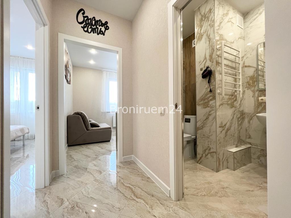 Описание объекта: Описание Сдается квартира в тихом центре, в новом многоэтажном доме 2023 года постройки, расположенном в 5 минутах езды на машине от центра города. С новым и качественным ремонтом. ❗️ В квартире современная мебель, новая сантехника, натяжные потолки, стеклопакеты, хорошая шумоизоляция, фен, утюг, гладильная доска, сушилка для белья, стиральная машина. Есть все необходимое для проживания.