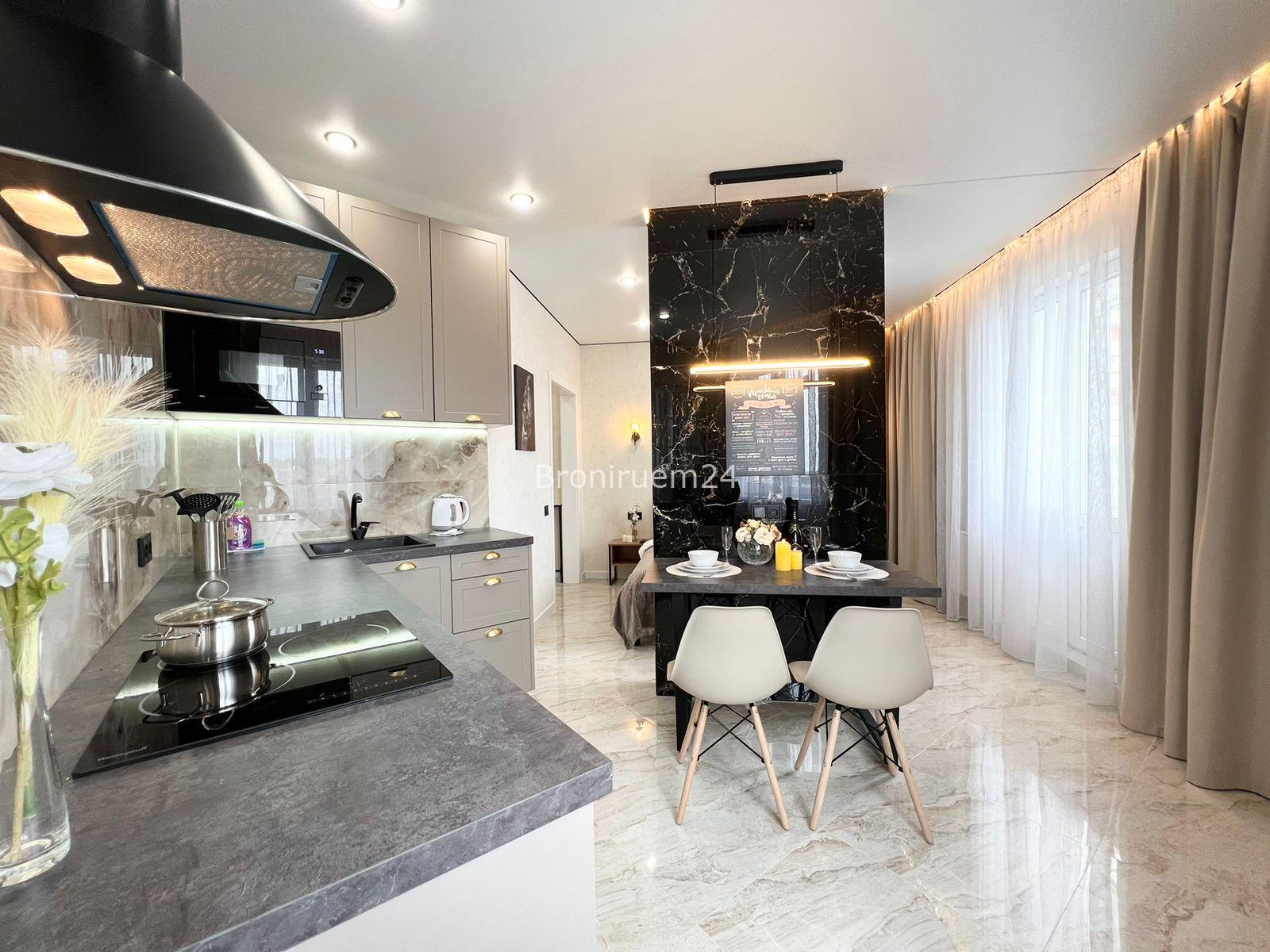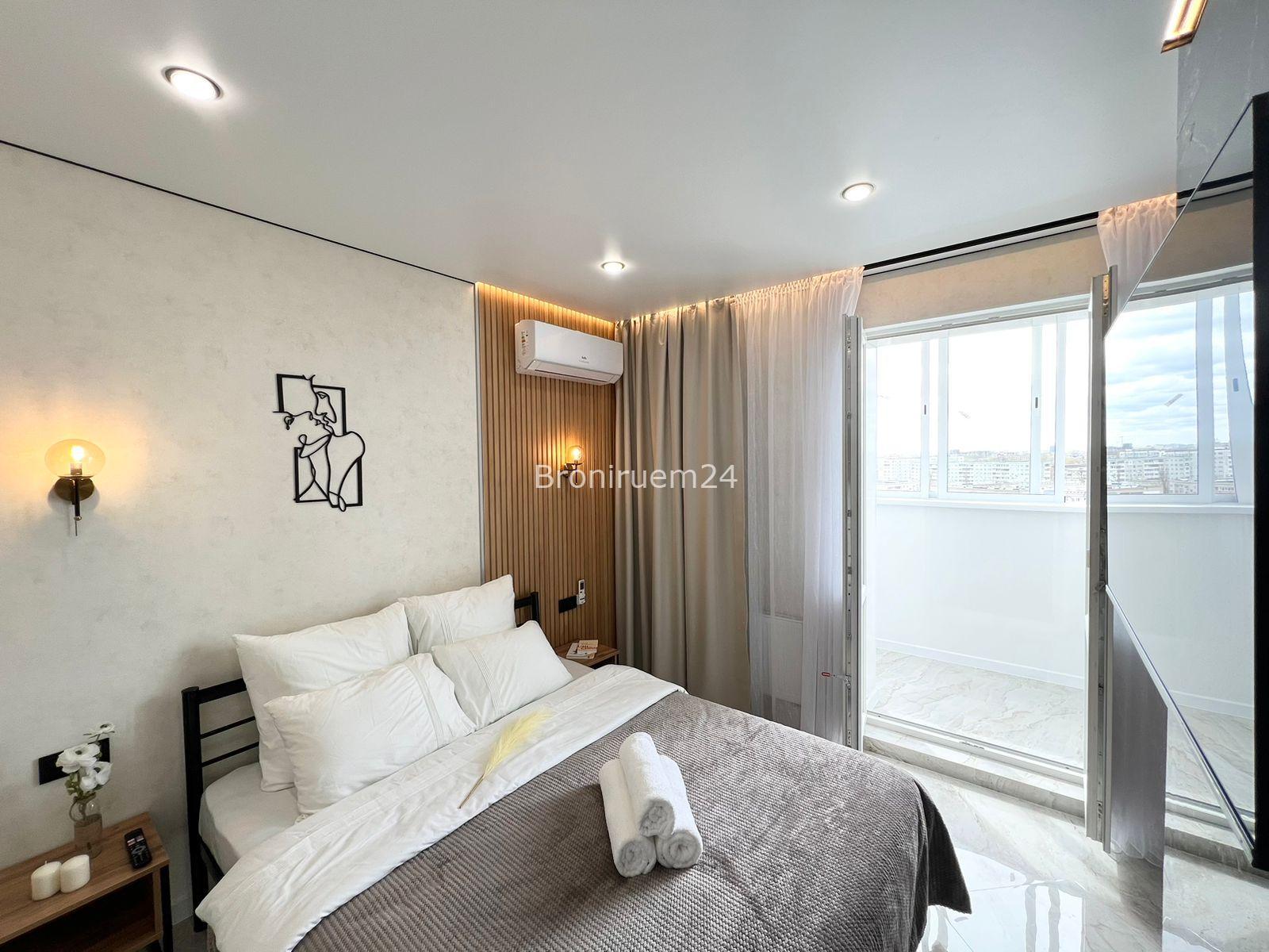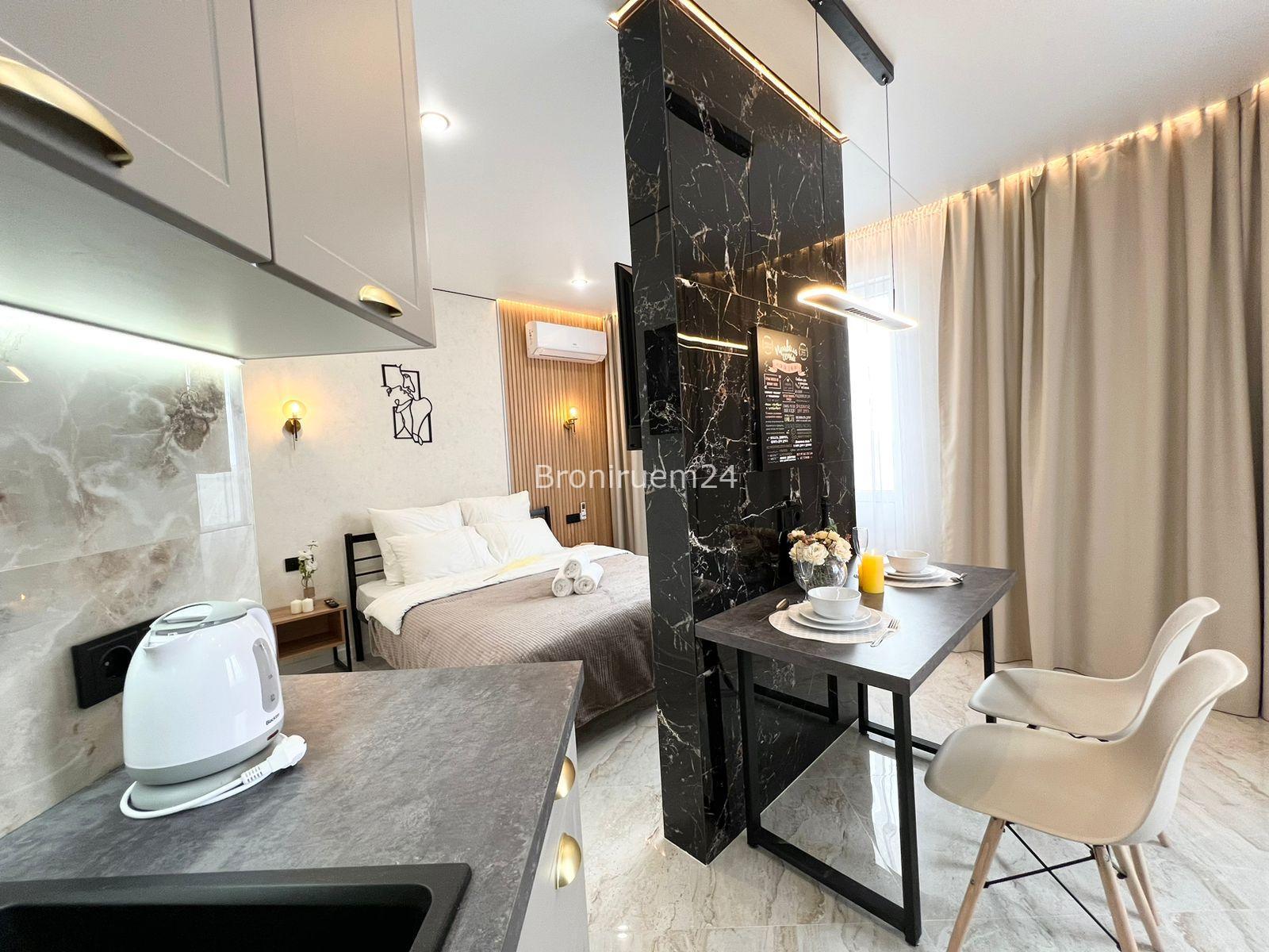 Описание объекта: Описание Сдается квартира-студия в тихом центре, в новом многоэтажном домe 2023 года постройки, расположенном в 5 минутах езды на машине от центра города. С новым и качественным ремонтом. ❗️ В квартире современная мебель, новая сантехника, натяжные потолки, стеклопакеты, хорошая шумоизоляция, фен, утюг, гладильная доска, сушилка для белья, стиральная машина. Есть все необходимое для проживания.
