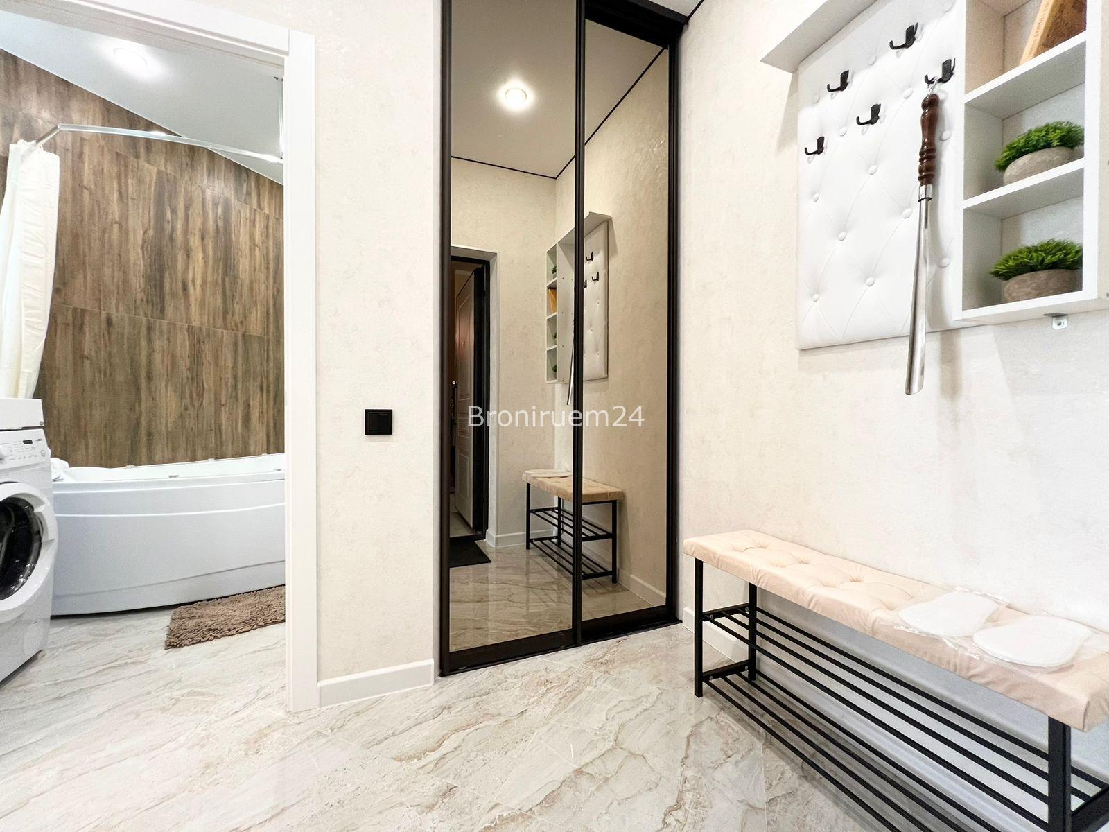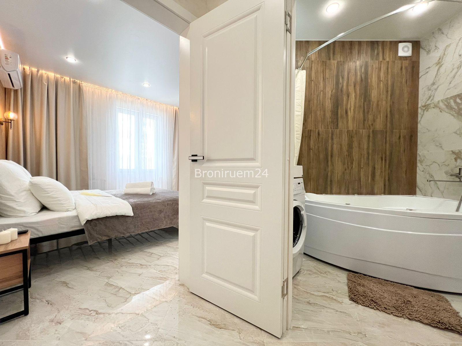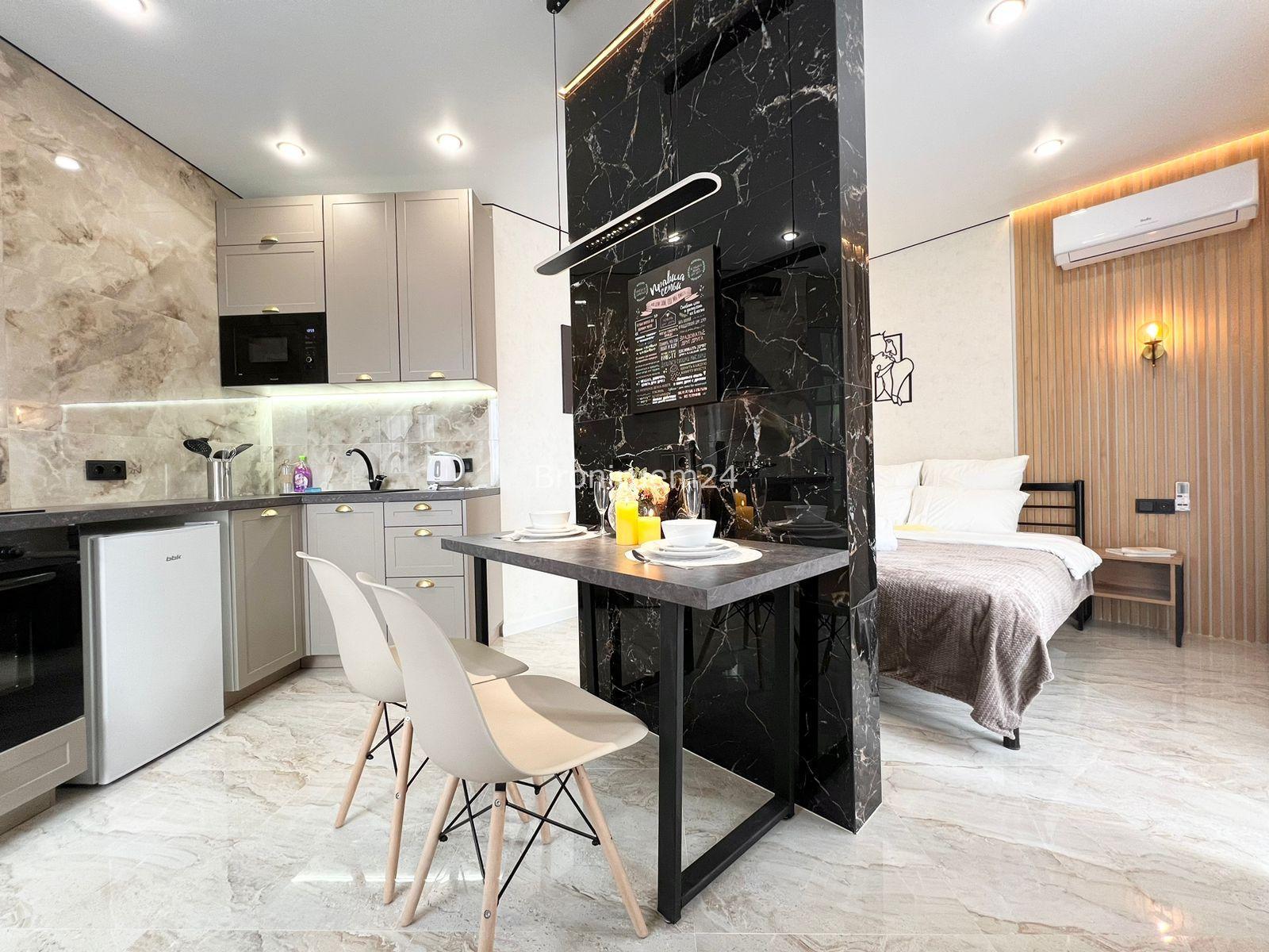 Описание объекта: Описание Сдается квартира-студия в тихом центре, в новом многоэтажном домe 2023 года постройки, расположенном в 5 минутах езды на машине от центра города. С новым и качественным ремонтом. ❗️ В квартире современная мебель, новая сантехника, натяжные потолки, стеклопакеты, хорошая шумоизоляция, фен, утюг, гладильная доска, сушилка для белья, стиральная машина. Есть все необходимое для проживания.